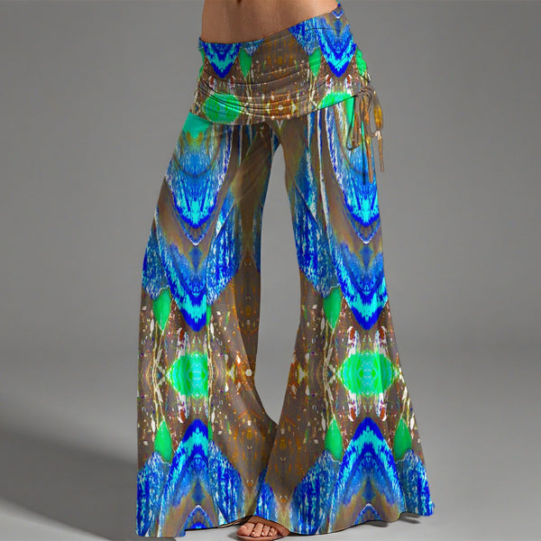 High waist, wide leg pants with side drawstrings. Perfect for the spring and summer. From lounge wear to yoga class, to a night out on the town, these pants are versatile enough to do it all. Soft breathable fabric.